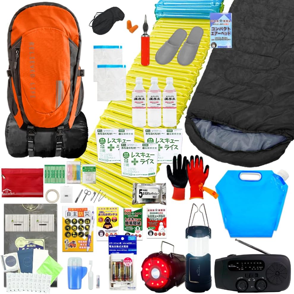 - 製品名:Relieved Life 防災セット 1人用 本格シュラフ付き(オレンジ)